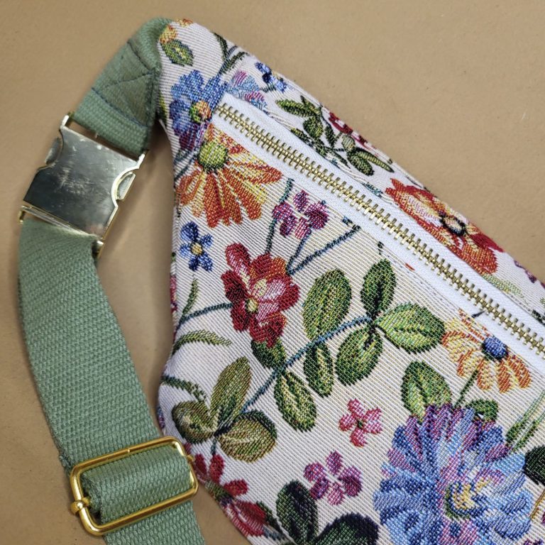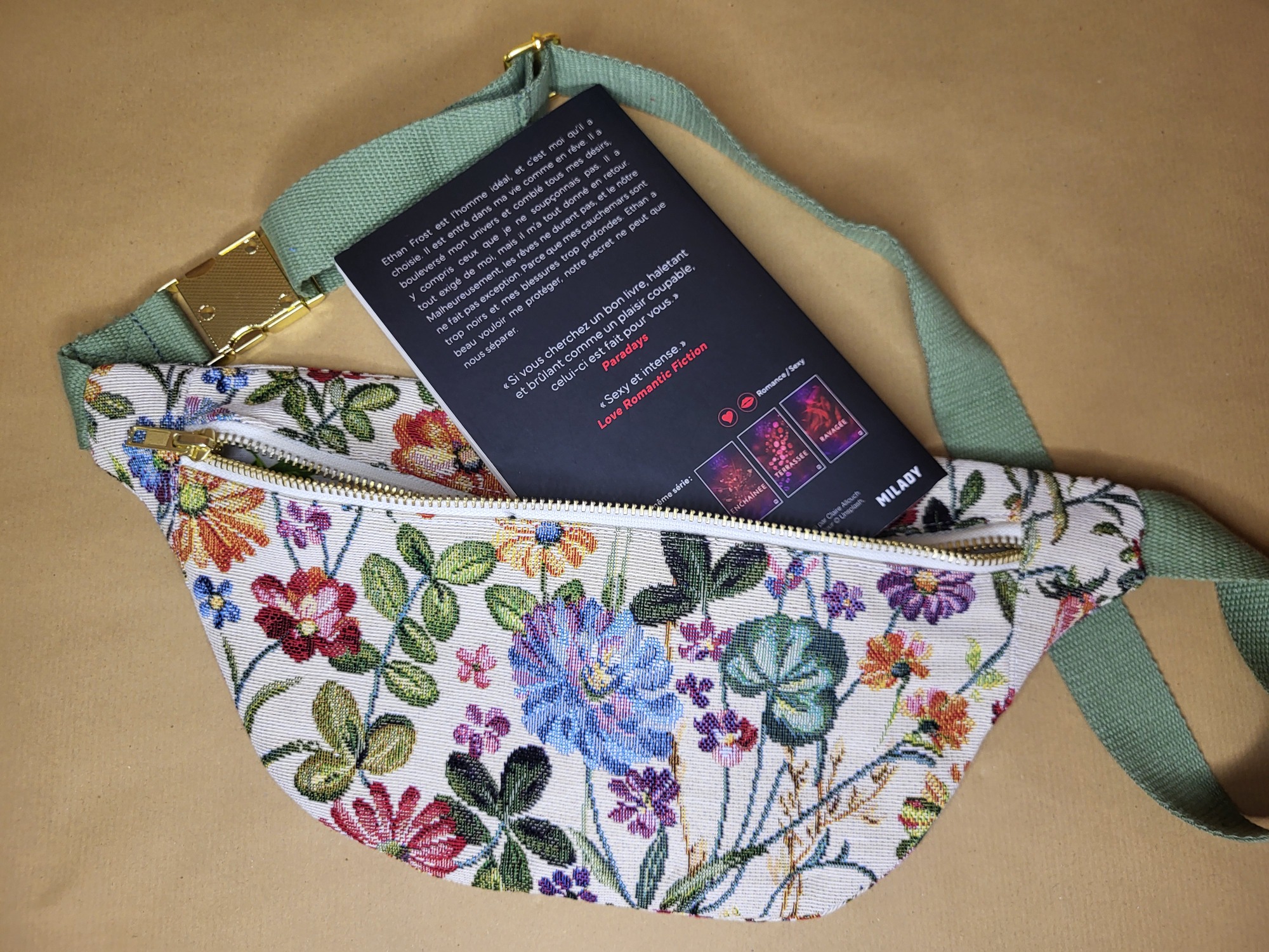 "Super chic sac banane. Il est vraiment bien réussi, avec le tissu fleuri à l'intérieur. Un très très grand merci"